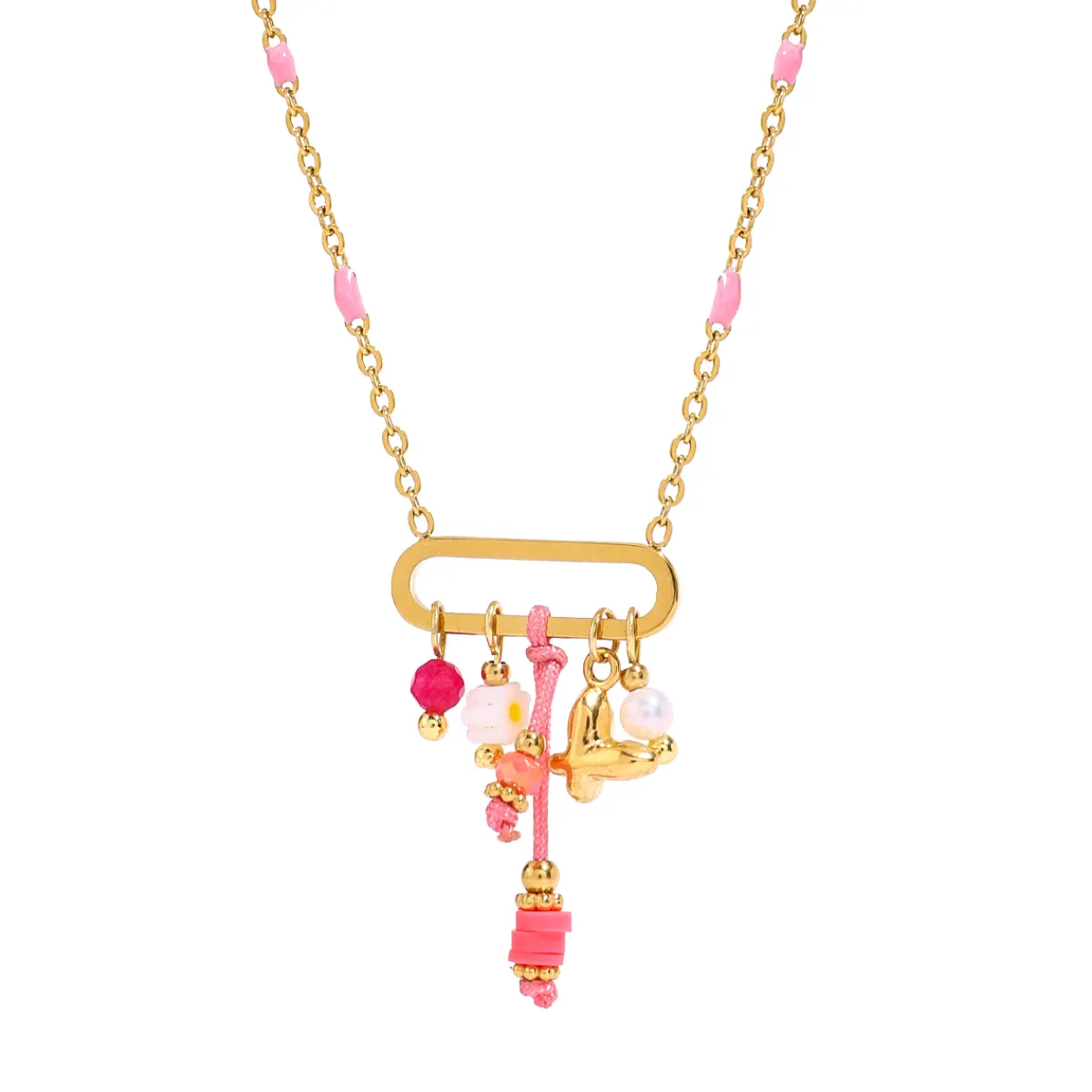 Boho Pink Trinket Multi charm necklace