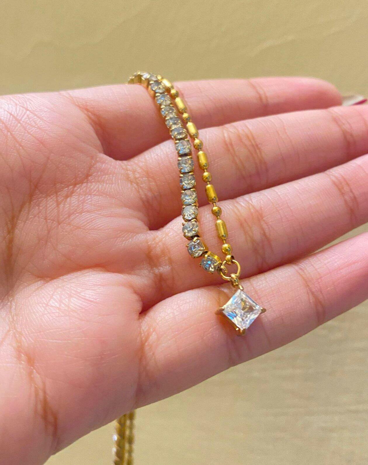 Luna Diamond Row Necklace– 18K Gold Thick Plated - White