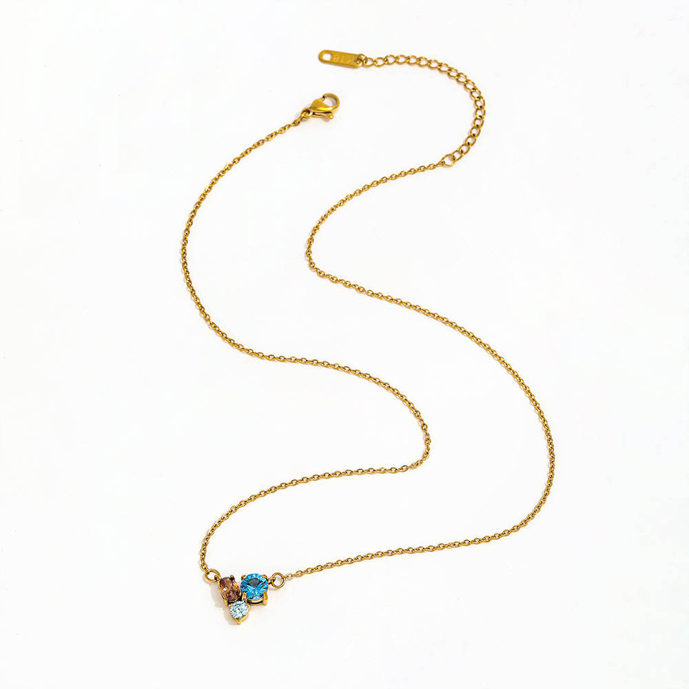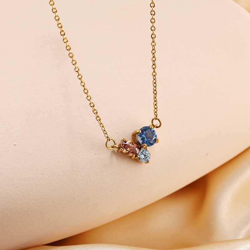 Tri-Color Crystal Pendant Necklace – 18K Gold-Plated Minimal Chain